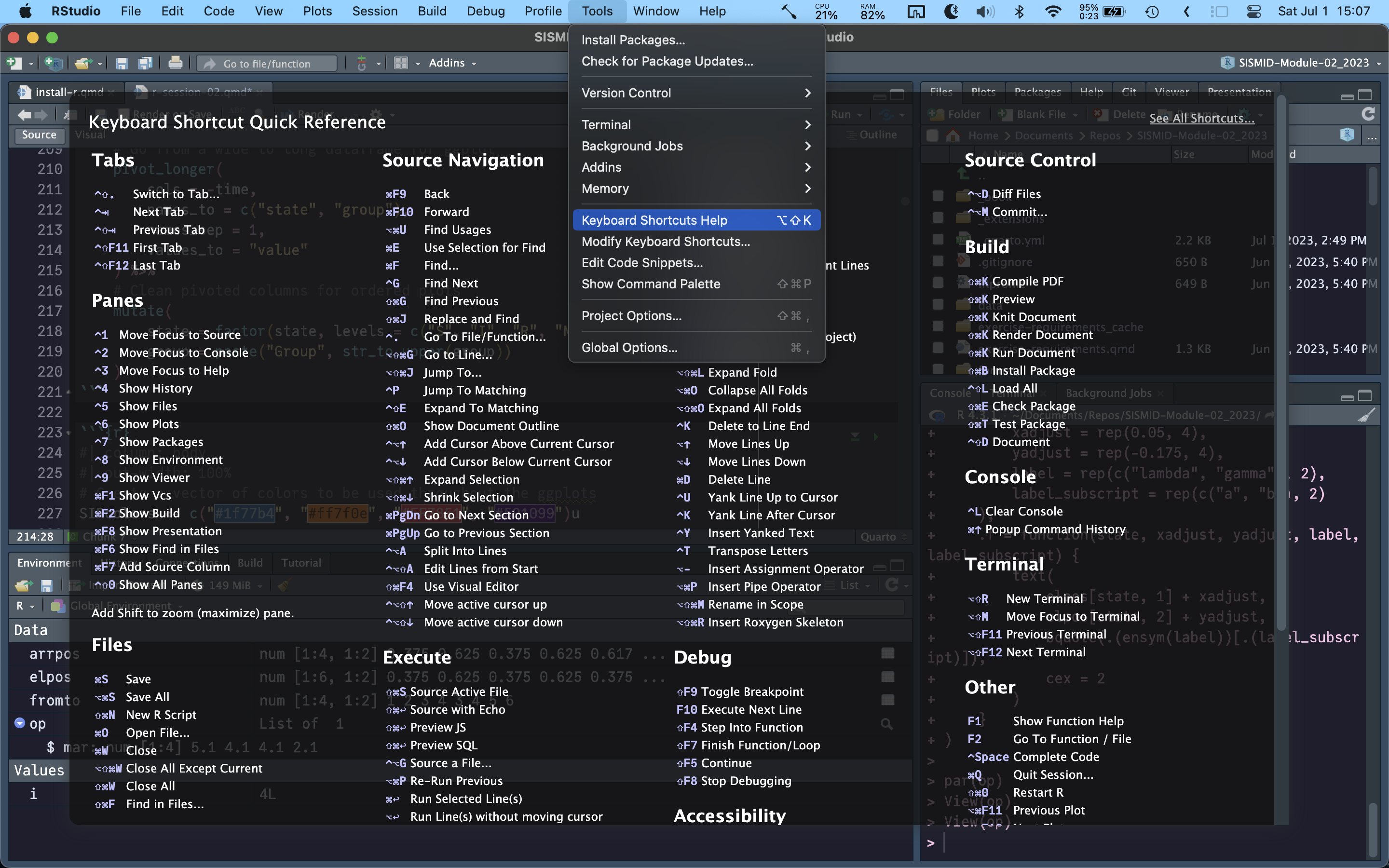RStudio keyboard shortcuts